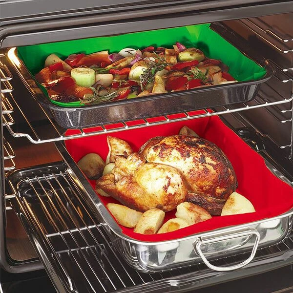 Help to prevent cross contamination whilst cooking with this Pack Of 3 Bake-O-Glide Non-Stick Reusable RGB Liners. Ideal for catering for vegetarians, vegans and those with with food allergies, these brightly coloured, reusable liners keep food groups and allergens separate whilst cooking. Suitable for use in flat trays, cookie sheets and baking tins. These coloured liners also help to promote fat free cooking since there is no need to use oil, grease or fat. Suitable for use in gas, electric and solid fuel ovens/cookers for baking, roasting, grilling and frying. These reusable, non-stick liners can be used over and over again, in fact 100’s of times over. Freezer safe up to -40°C, maximum working temperature 260°C. Use each colour to differentiate between ingredients such as meat, veg, fish or alternatively nuts, vegan, vegetarian or other allergens. Suitable for dishwasher use. Dimensions: 40cm x 33cm. Supplied as a pack of 3.