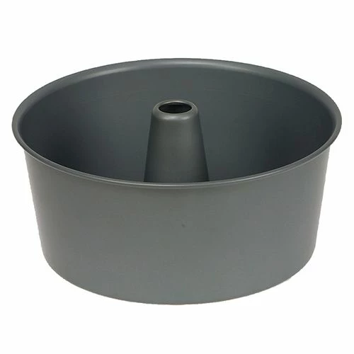 This 24 cm non-stick Angel Cake pan with a central tube has a premium non-stick coating and is made from heavy duty stainless steel. 24cm diameter x 10.5cm deep. This angel cake pan from Dexam boasts a loose base.