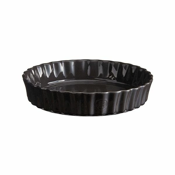 The Emile Henry charcoal 24cm deep tart dish features a sleek design with high fluted sides with elegant curves and a prefect flat base for creating delicious quiches, pies and flans.