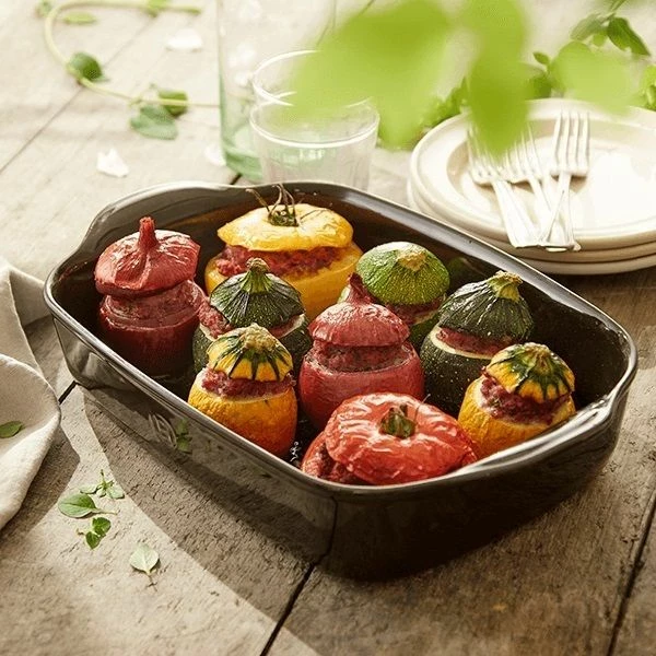 The Emile Henry charcoal rectangular baking dish is perfect for creating delicious homemade meals.