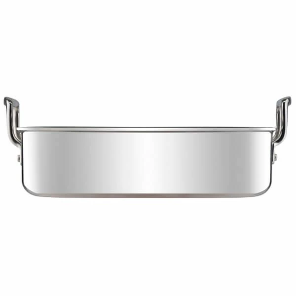 The high handles on this Le Creuset 3-Ply Stainless Steel 26cm Square Roaster offer a safe and secure grip when lifting and manoeuvring. Perfect for roasting meat and vegetables, this square roaster can also be used for baked desserts and can be used on any heat source (including induction) as well as in the oven. Le Creuset 3-Ply Cookware uses the latest multi-layering technology, bonding an aluminium core between two layers of premium-grade stainless steel. This allows heat to spread quickly and evenly throughout the entire pan – from base to rim. It also makes it suitable for use on all heat sources, including induction, whilst also being ovenproof and dishwasher safe (though we always recommend handwashing). Supplied with a Le Creuset lifetime guarantee.