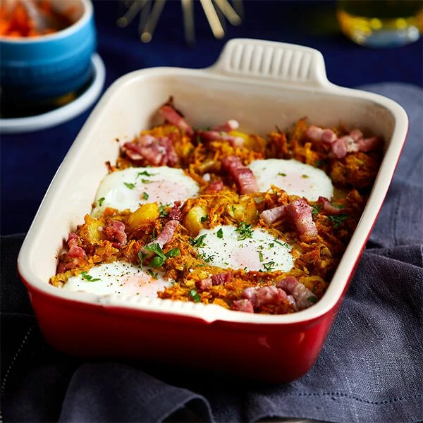 This stoneware dish boasts a generous cooking capacity (2.4L) and is perfect for marinating, roasting, baking or serving.