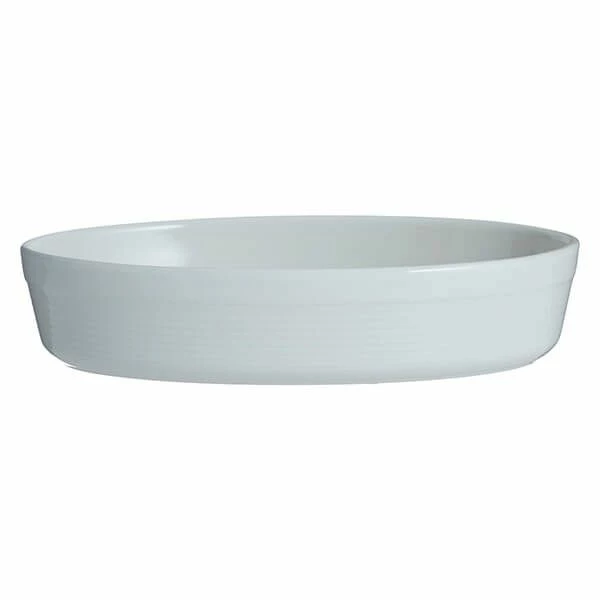 The Mason Cash William Mason 28cm White Oval Dish is perfect for roasting vegetables and cooking hot pots/shepherd’s pies. Made from fine quality stoneware, this oval dish is easy to clean. A stylish addition to any kitchen. Microwave, dishwasher and freezer safe. Suitable for use in an conventional oven. Dimensions: L18cm x W28cm x H6cm.
