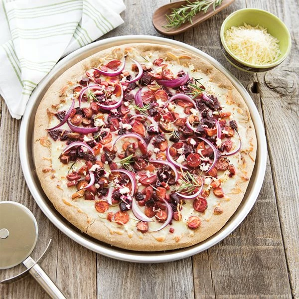 The Nordic Ware Naturals Deep Dish Pizza Pan, is made from pure aluminum to support superior heat conductivity and produces consistent evenly browned baked goods every time.