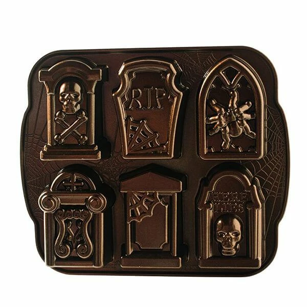 Create your own eerie graveyard centerpiece scene with this spooky and versatile Nordic Ware Tombstone Cakelet Pan. Perfect for serving for Halloween celebrations. Nordic Ware Tombstone Cakelet Pan has a 4.5 cup capacity. Made from Cast Aluminum. Supplied with a Nordic Ware lifetime warranty. Suitable for hand washing with warm and soapy water. Made in the USA.