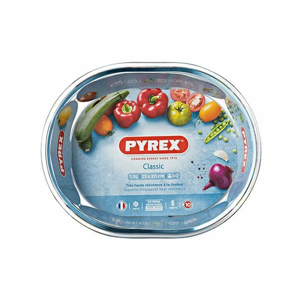 The Pyrex 25 x 20cm Oval Pie Dish is great for helping you prepare a delicious pie, as well as freezing the leftovers. This borosilicate glass dish is designed to withstand a thermal shock up to 220°C, meaning this glass dish can safely go directly from the freezer at a temperature of – 20°C, into the oven at a temperature of 200°C. The Pyrex 25 x 20cm Oval Pie Dish is BPA free, scratch resistant and will not retain stains or odours. This oval dish can be neatly stacked in your cupboard or freezer for a straightforward, space saving solution. Holds a 1.5L capacity and measures 25 x 20cm. Made from borosilicate glass. Supplied with a 10 year Pyrex warranty. Oven, microwave and freezer safe.