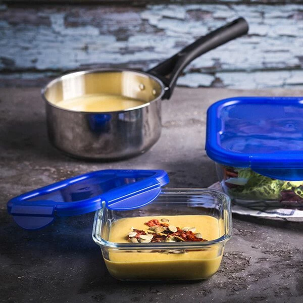 This small square Pyrex Cook & Go dish is made from shock resistant borosilicate glass and includes a plastic lid that closes securely for an airtight and leak proof seal.