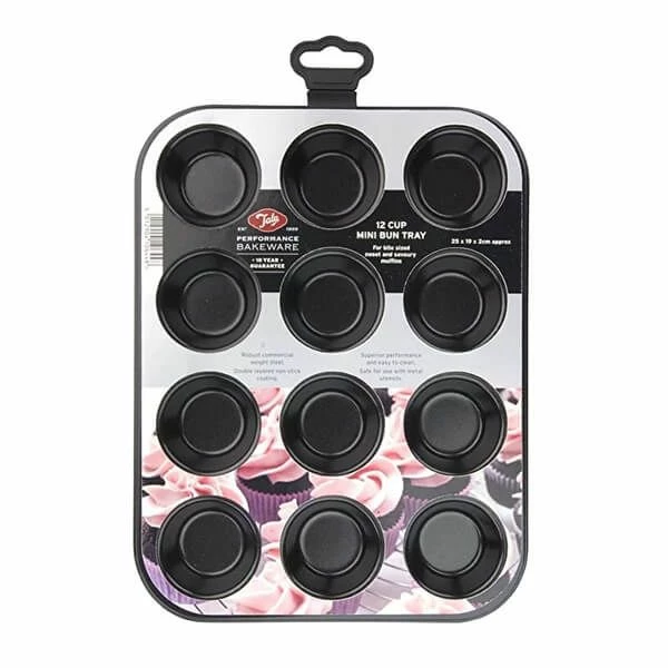This Tala Performance 12 cup mini bun tin is made from heavy duty carbon steel and features rolled edges to provide extra strength in the oven and whilst in use.